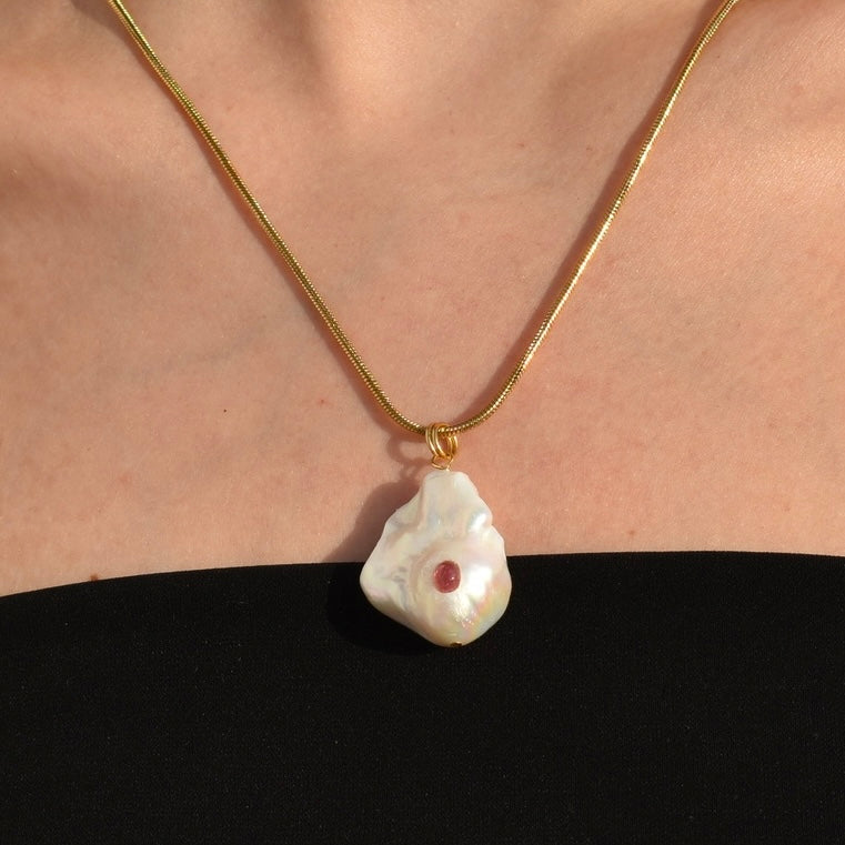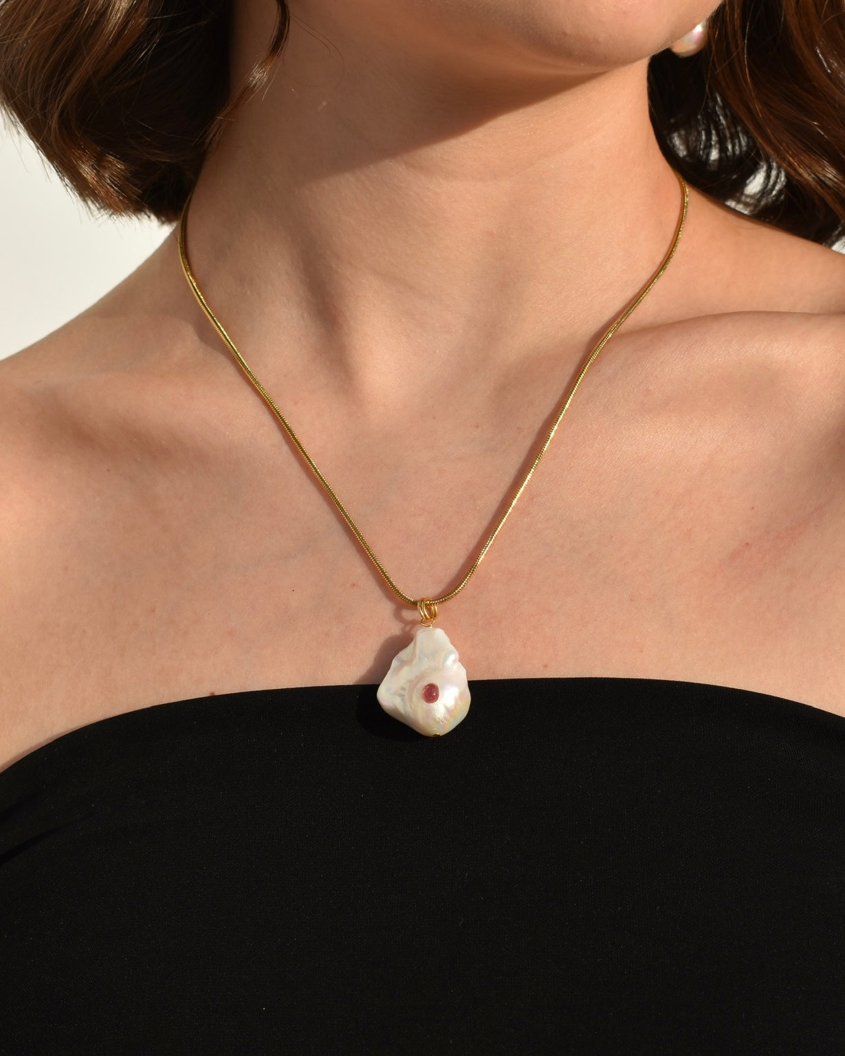 Ambas se unen en una composición equilibrada, suspendida de una cadena de acero inoxidable que combina elegancia con resistencia, creando un contraste sutil entre la delicadeza y la fuerza.
