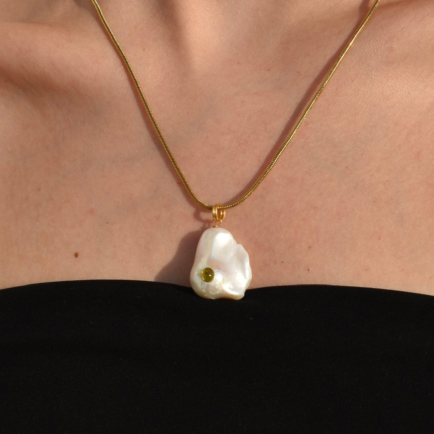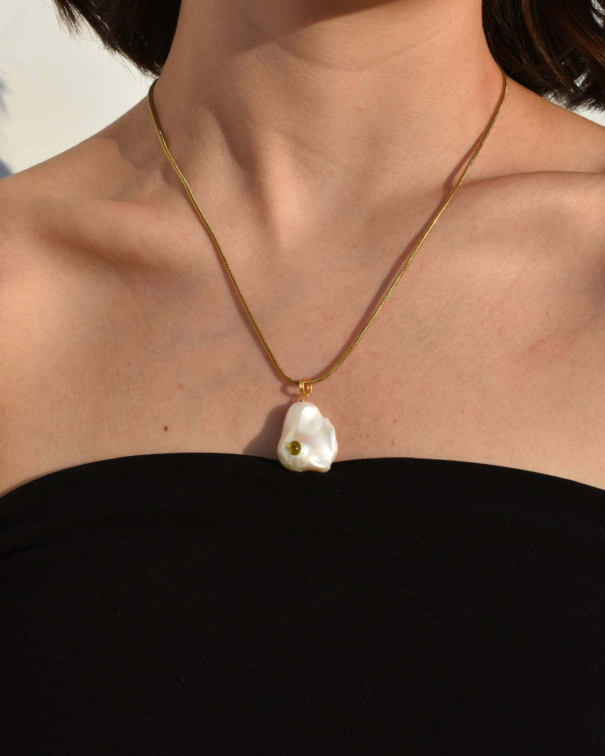 Ambas se unen en una composición equilibrada, suspendida de una cadena de acero inoxidable que combina elegancia con resistencia, creando un contraste sutil entre la delicadeza y la fuerza.