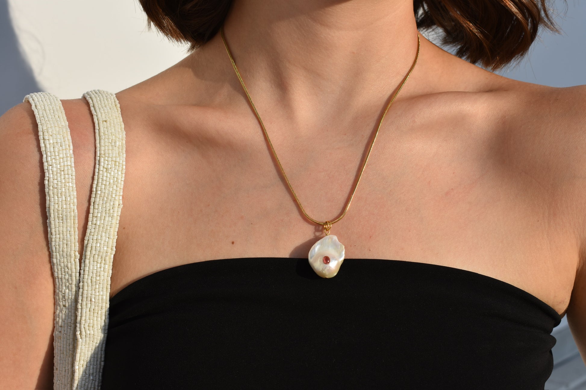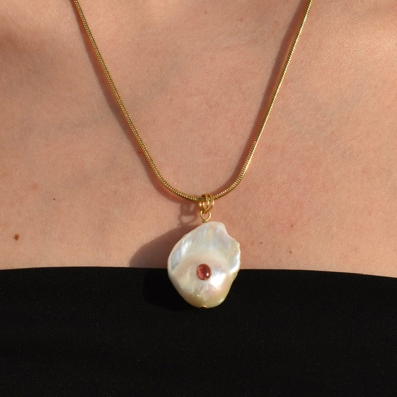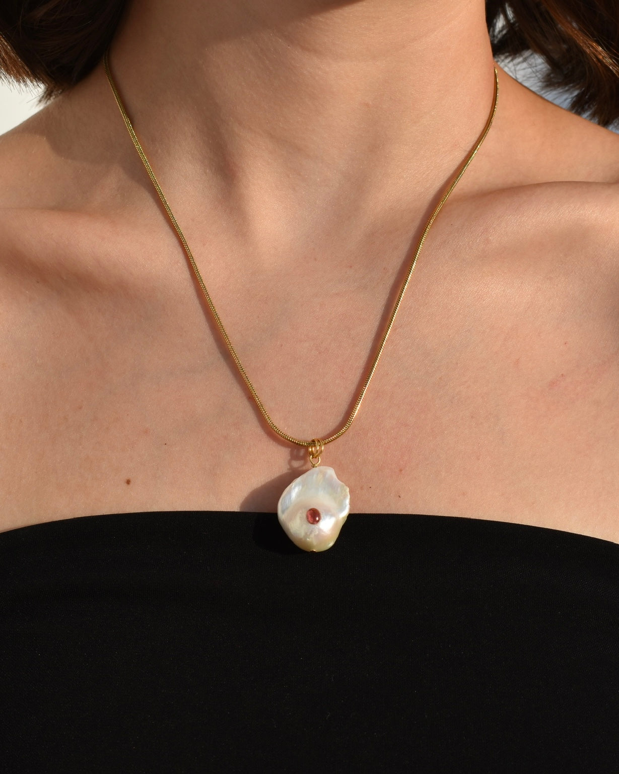 Ambas se unen en una composición equilibrada, suspendida de una cadena de acero inoxidable que combina elegancia con resistencia, creando un contraste sutil entre la delicadeza y la fuerza.