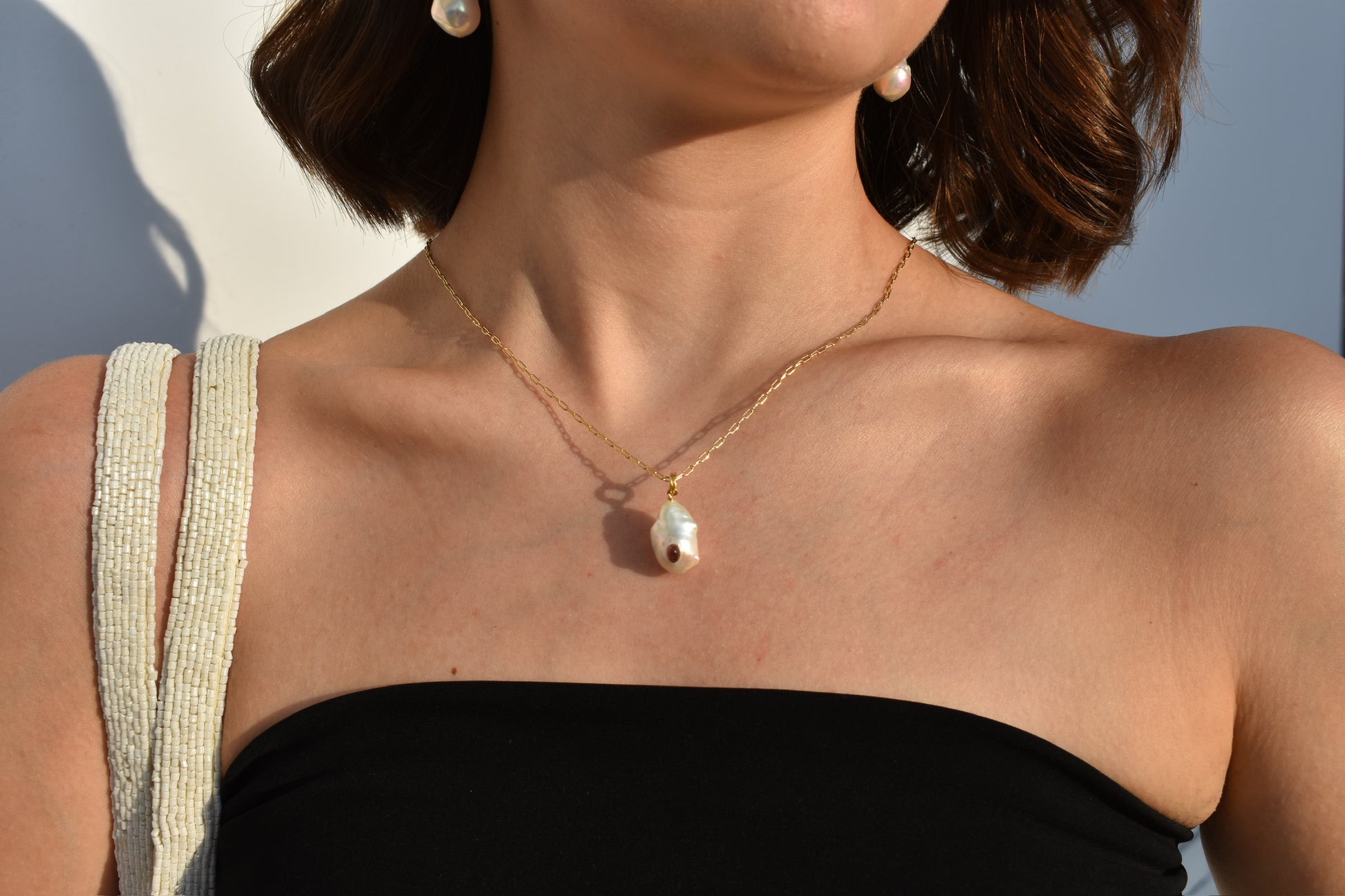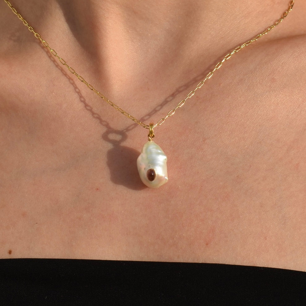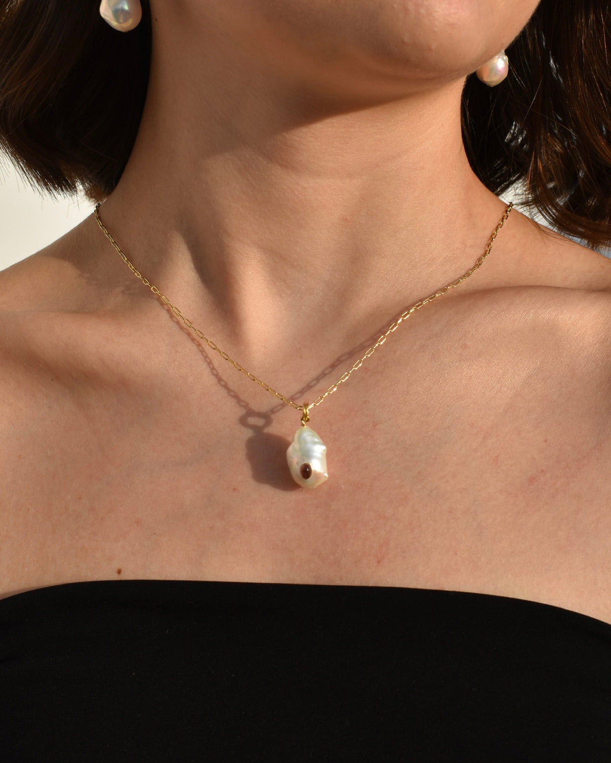 Ambas se unen en una composición equilibrada, suspendida de una cadena de acero inoxidable que combina elegancia con resistencia, creando un contraste sutil entre la delicadeza y la fuerza.