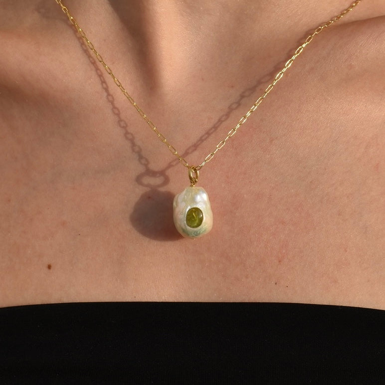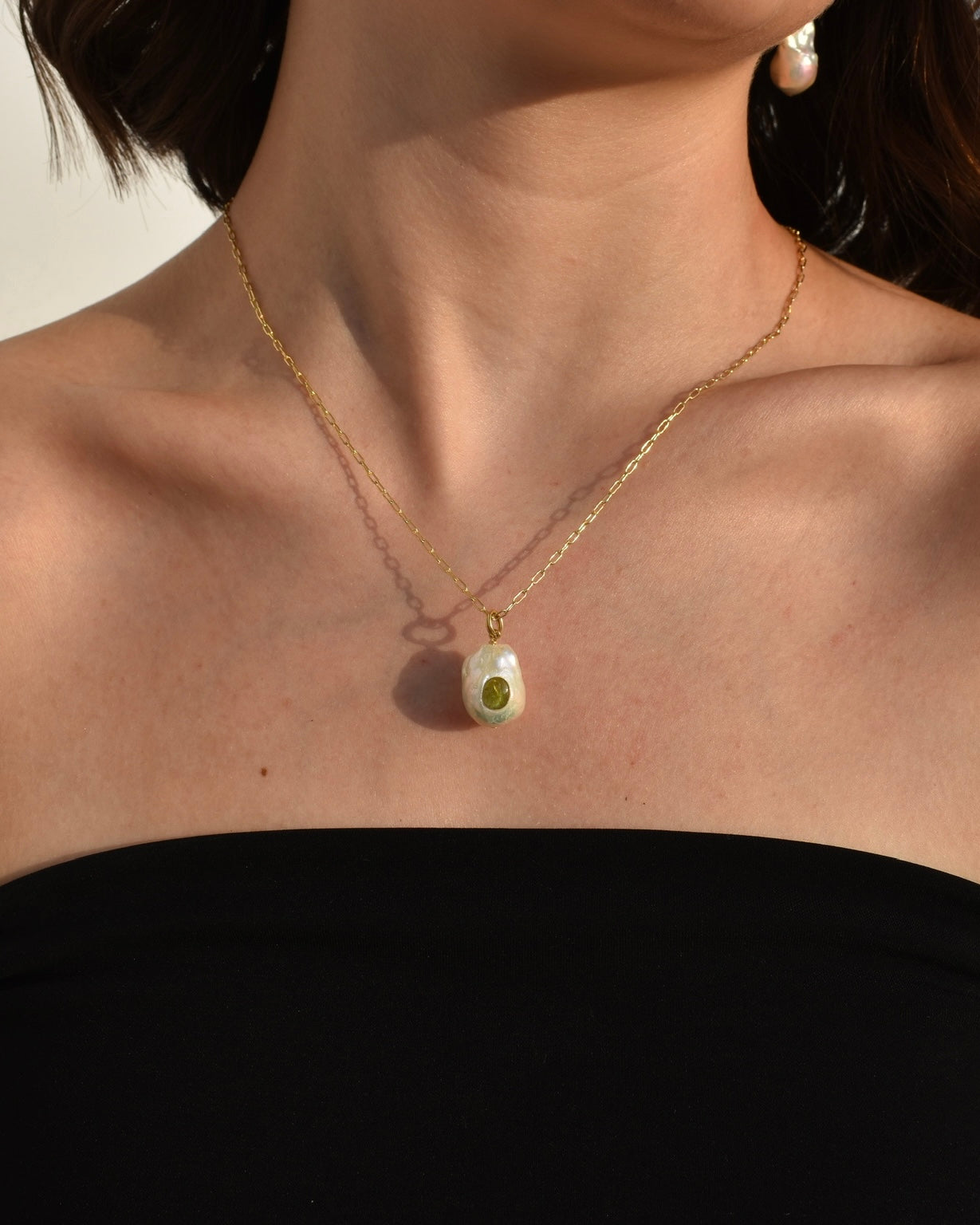 Ambas se unen en una composición equilibrada, suspendida de una cadena de acero inoxidable que combina elegancia con resistencia, creando un contraste sutil entre la delicadeza y la fuerza.