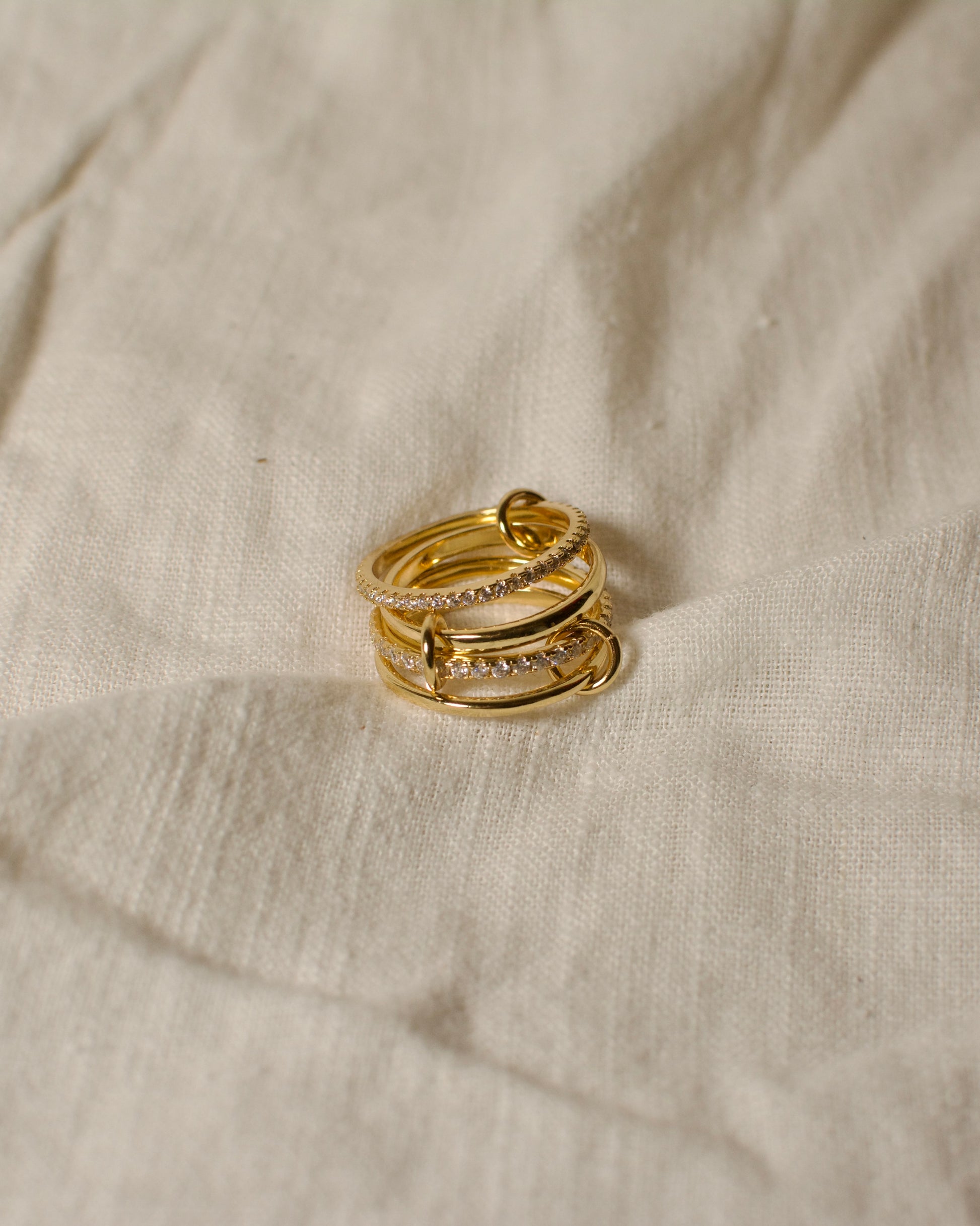 Anillo de acero inoxidable con Chara de oro y cristales.