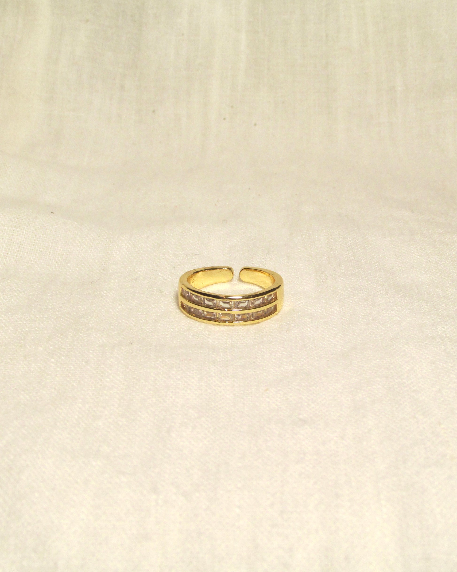 Anillo de chapa de oro con cristales blancos, medida ajustable.