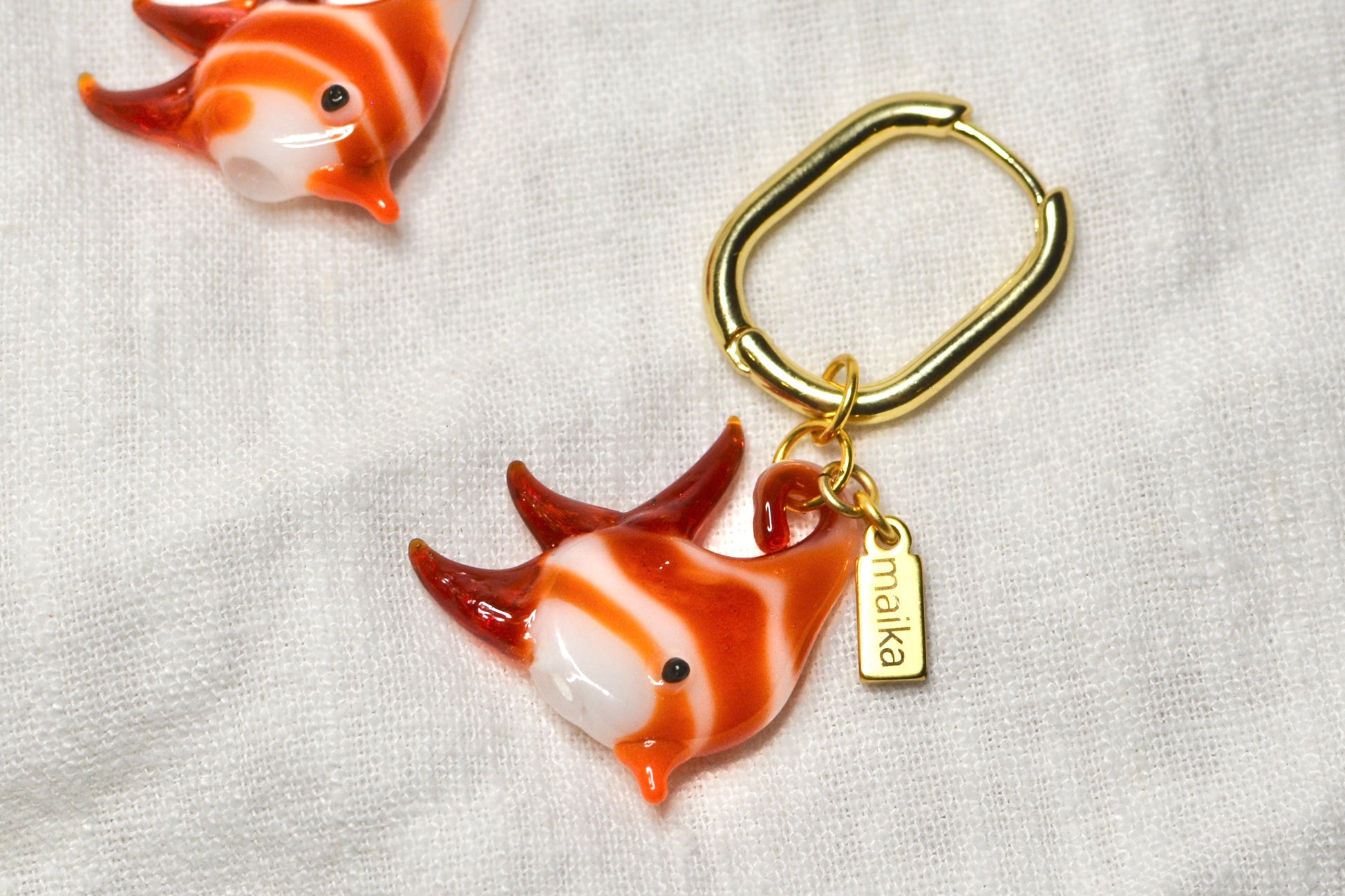 Aretes de arracadas de chapa de oro con dijes de vidrio soplado hechos a mano. Estos dijes son una verdadera obra de arte y el accesorio perfecto para este verano.