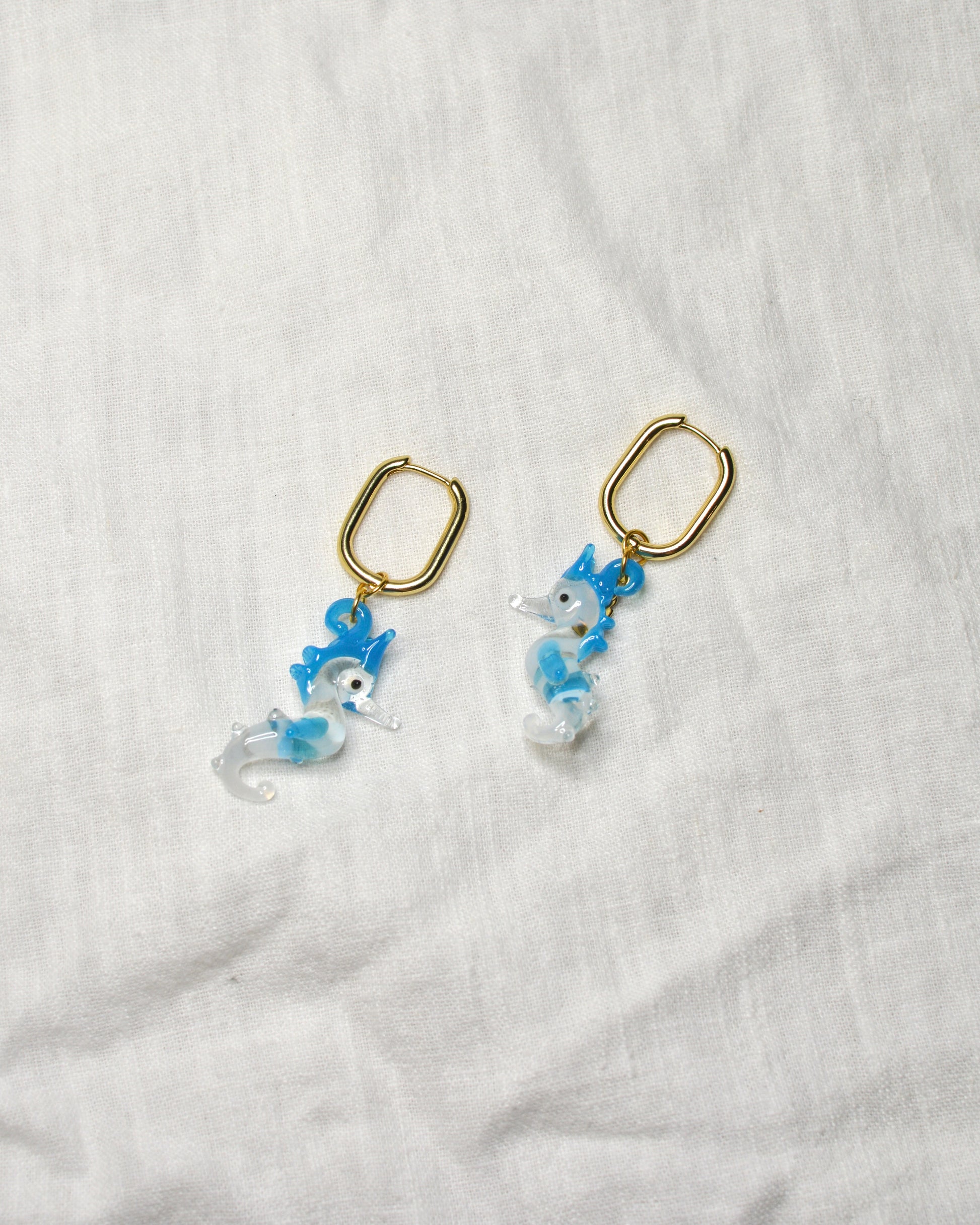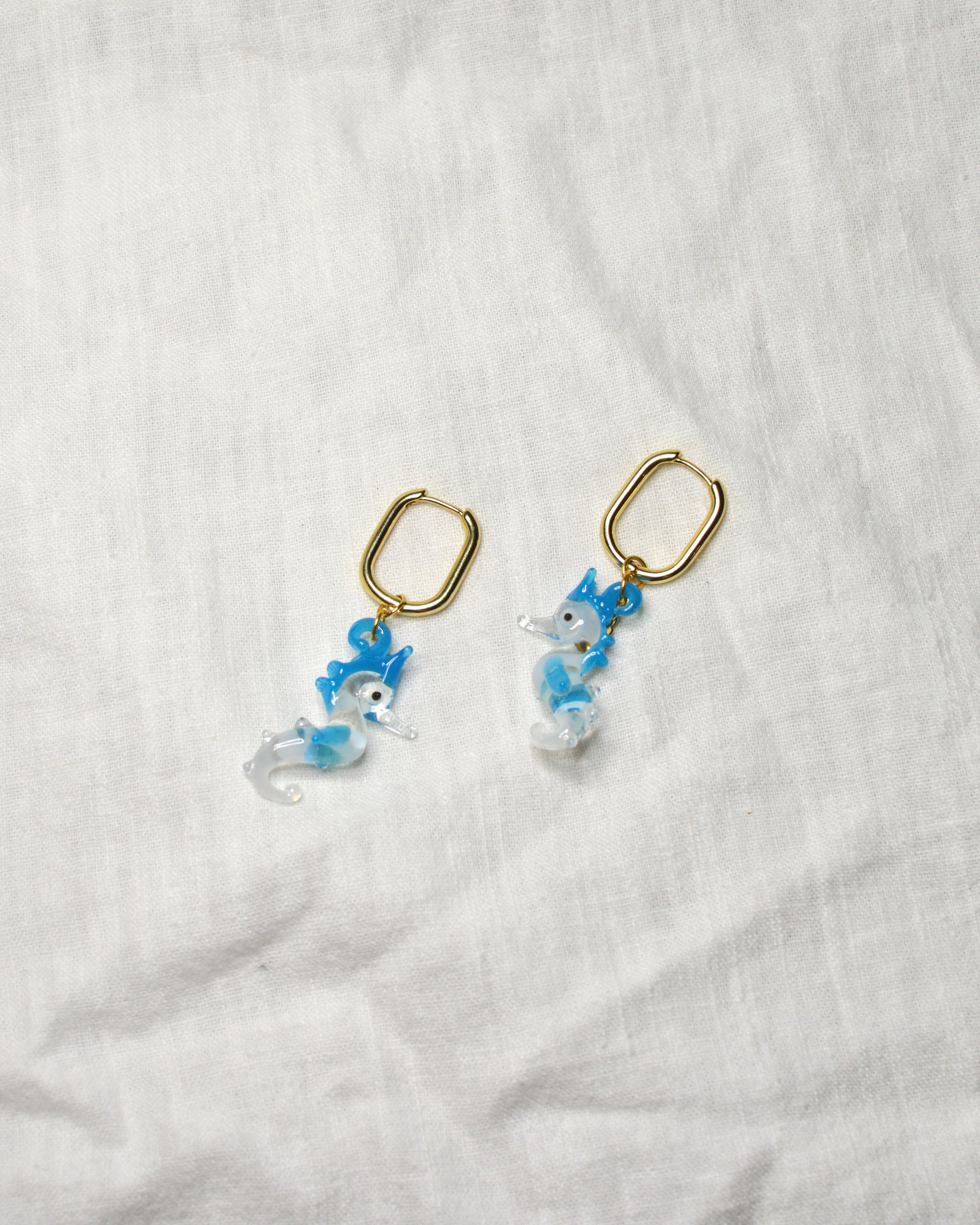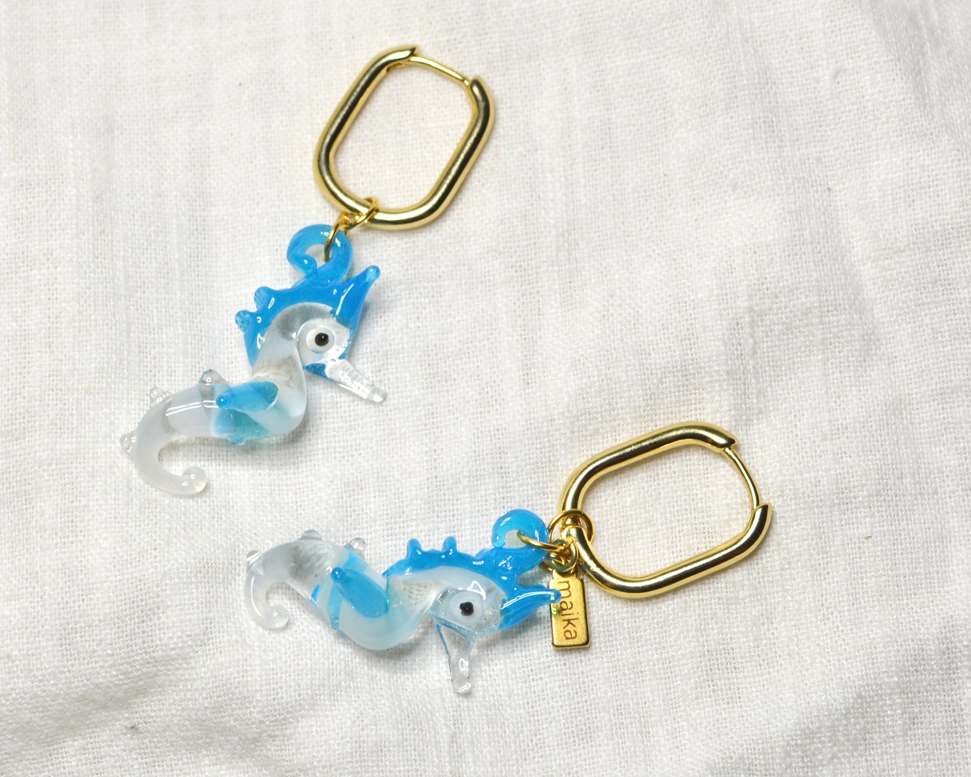 Aretes de arracadas de chapa de oro con dijes de vidrio soplado hechos a mano. Estos dijes son una verdadera obra de arte y el accesorio perfecto para este verano.