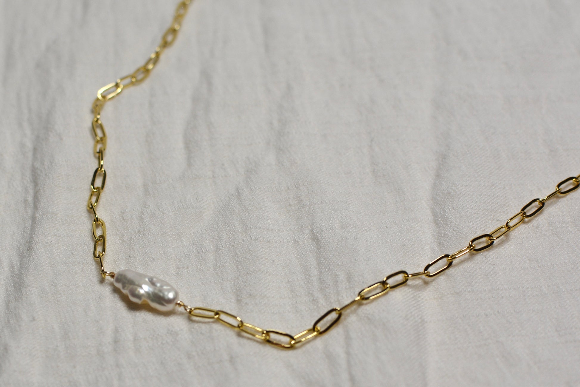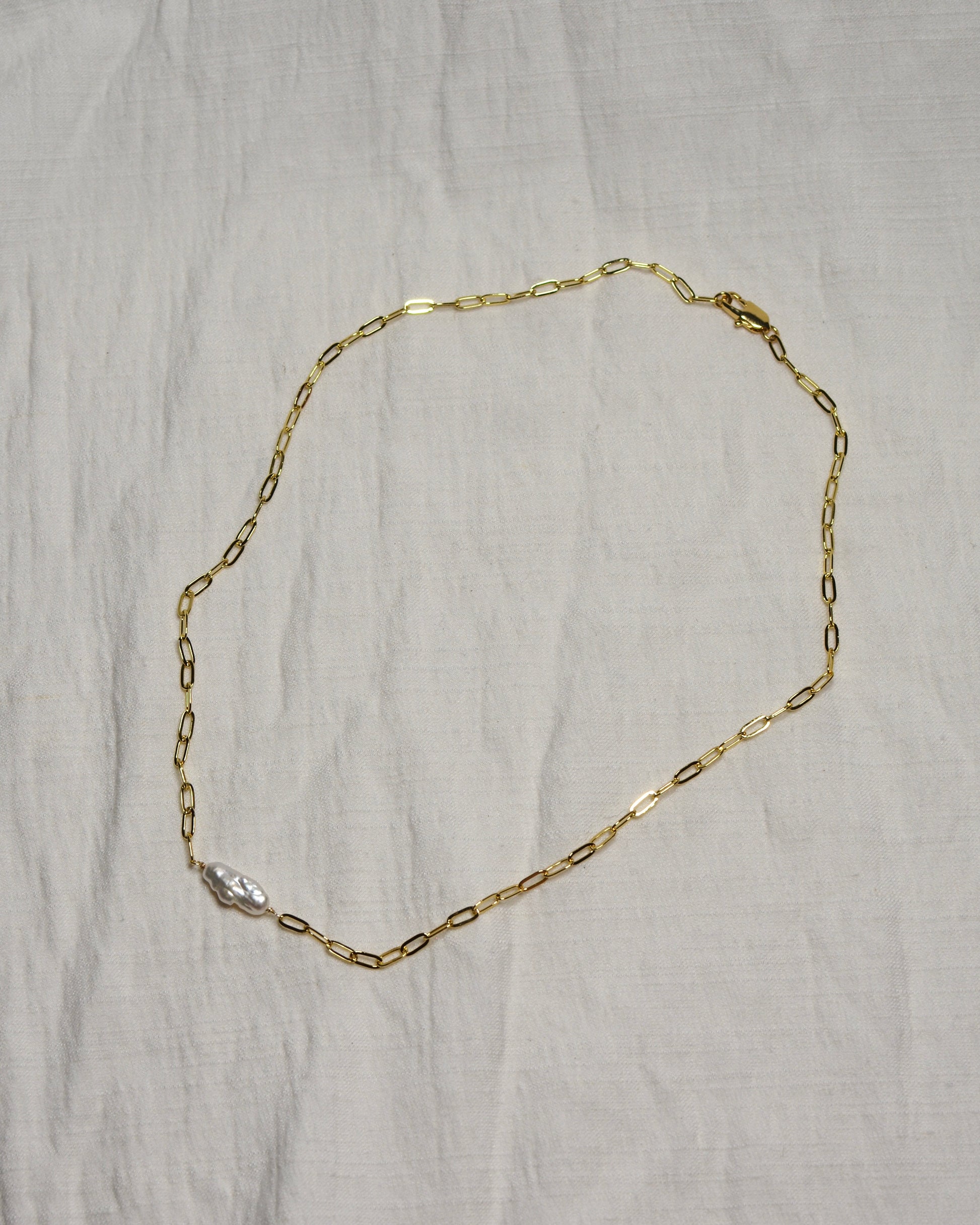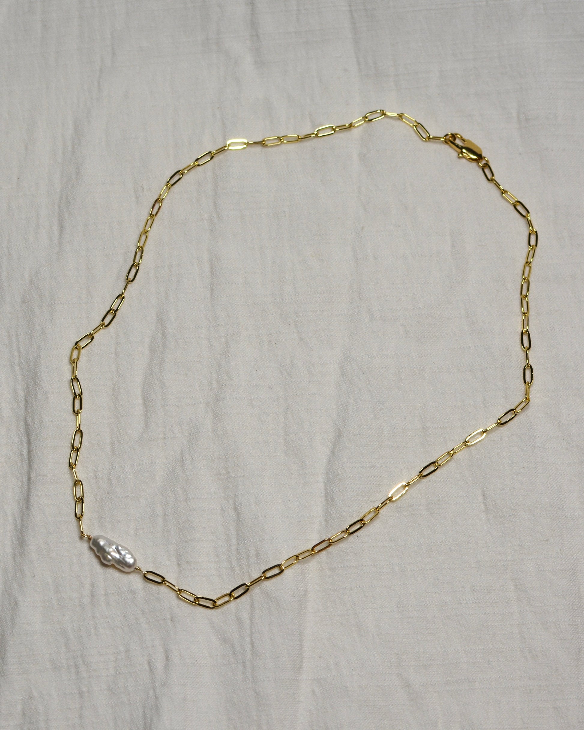 Collar de chapa de oro con perla natural hecho a mano.