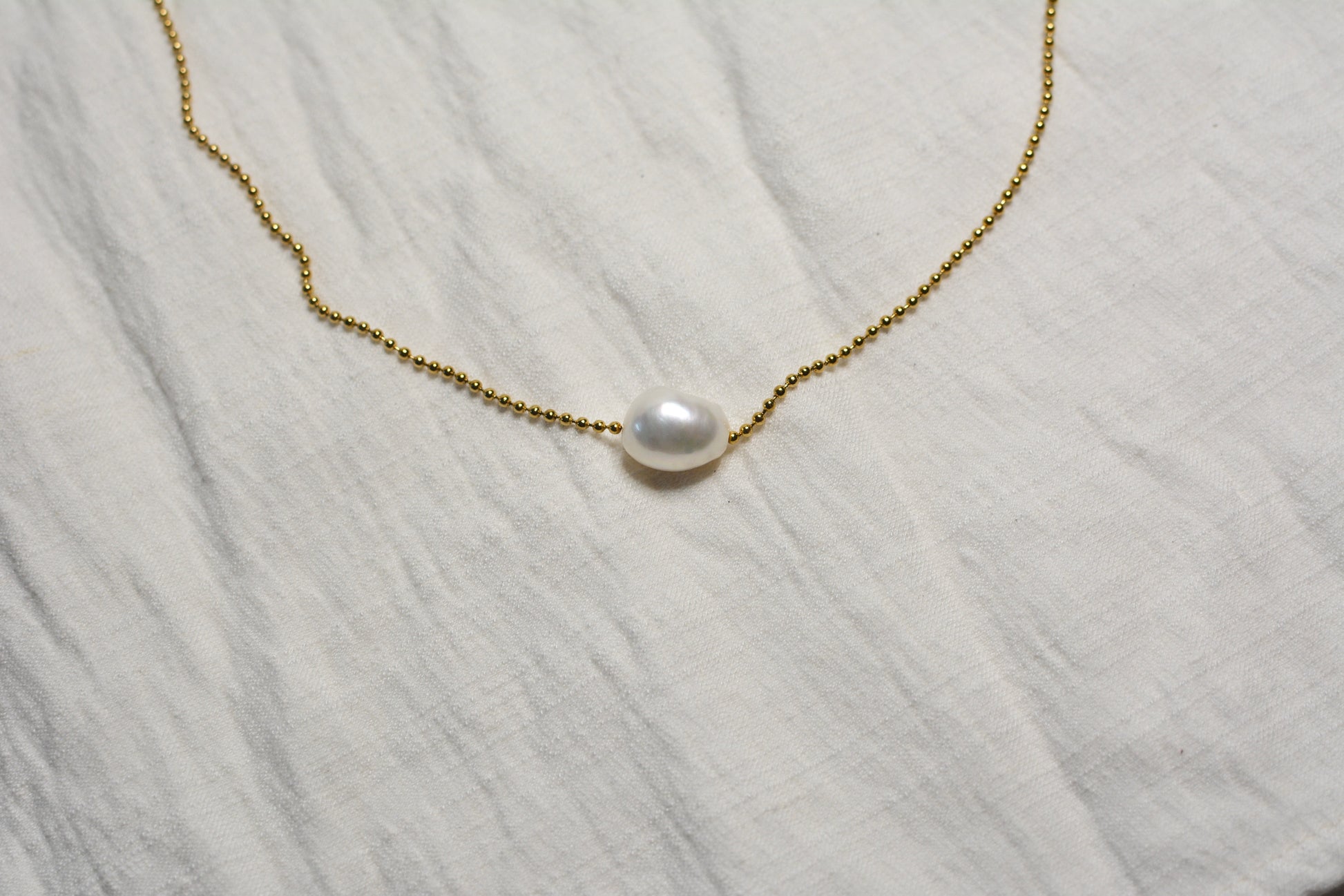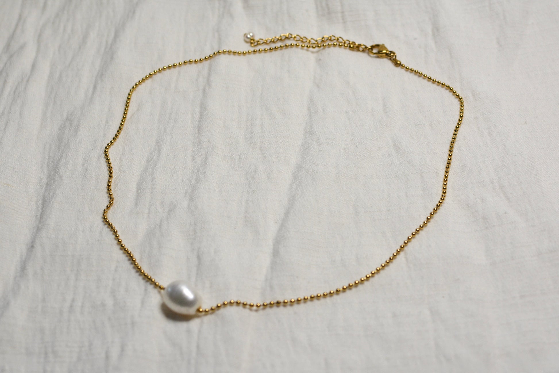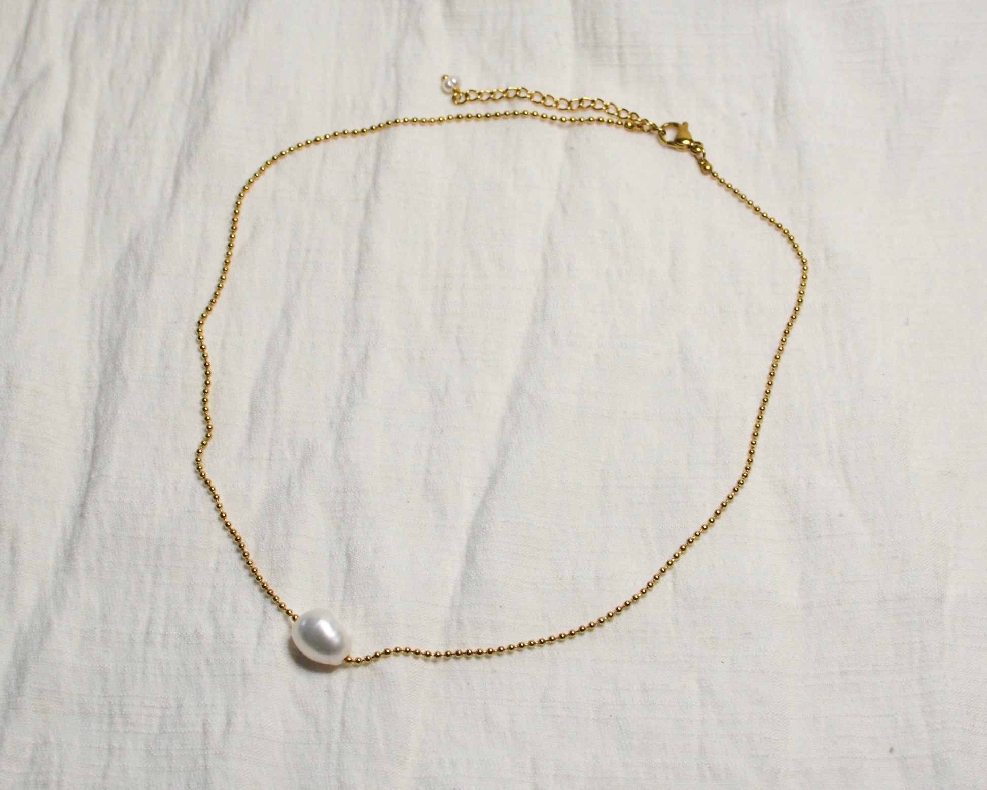 Collar de cadena de acerero inoxidable con perla natural de rio.