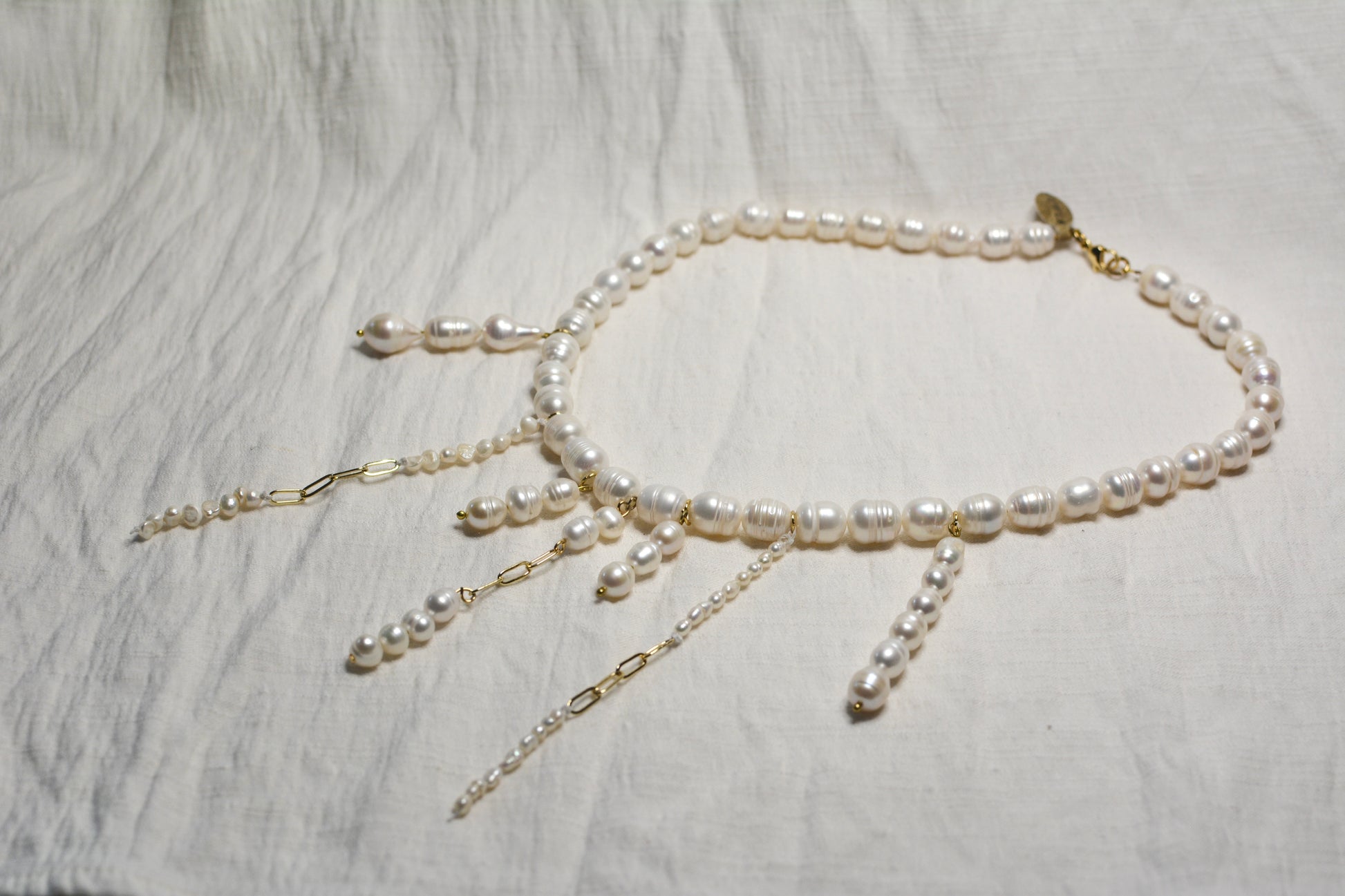 Collar hecho a mano de chapa de oro y de perlas naturales, pieza única!