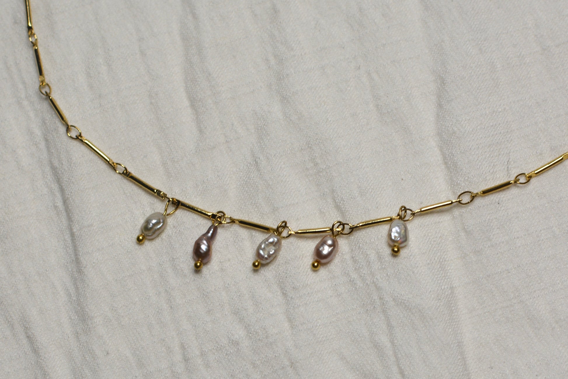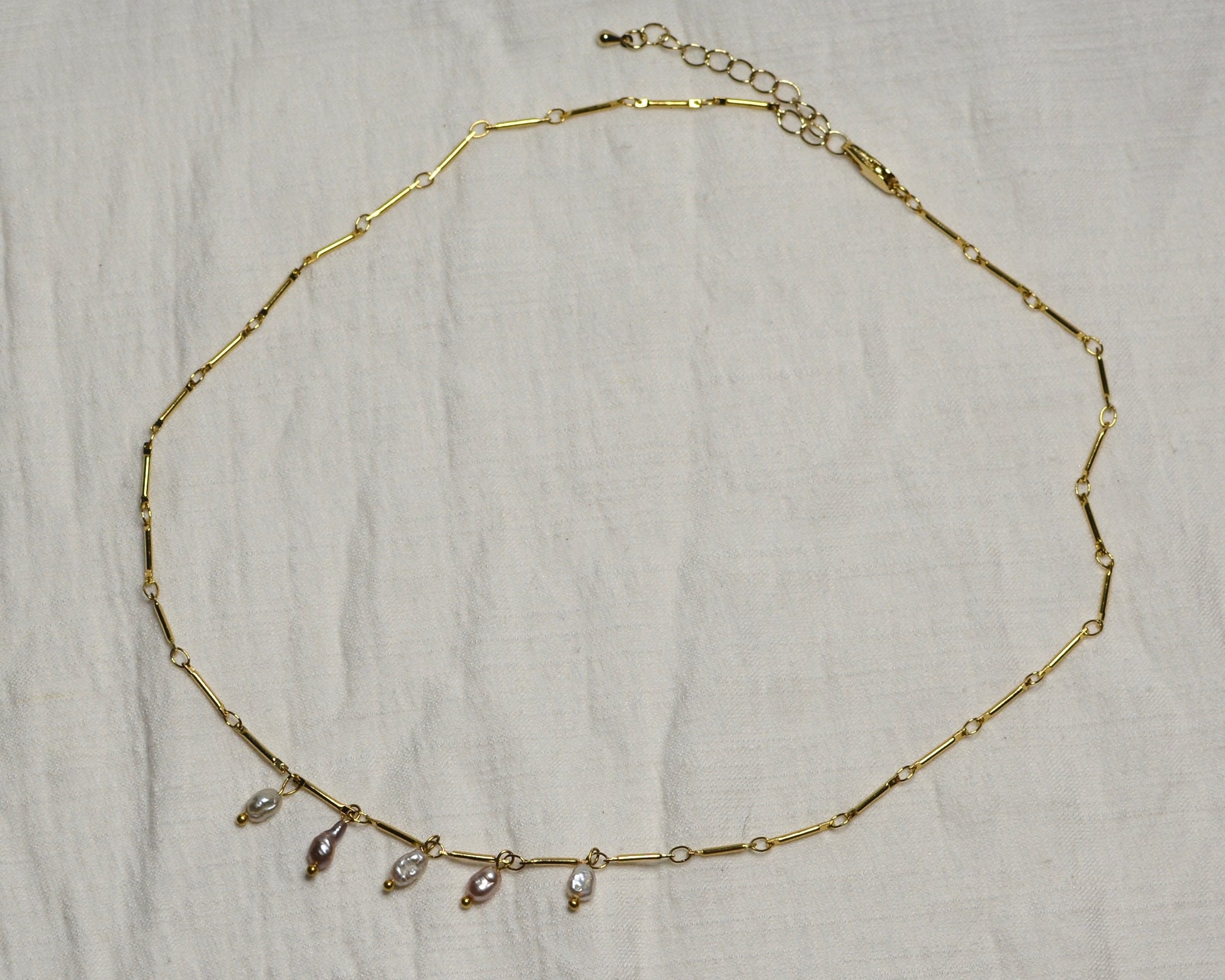 Collar hecho a mano de chapa de oro con perlas naturales.