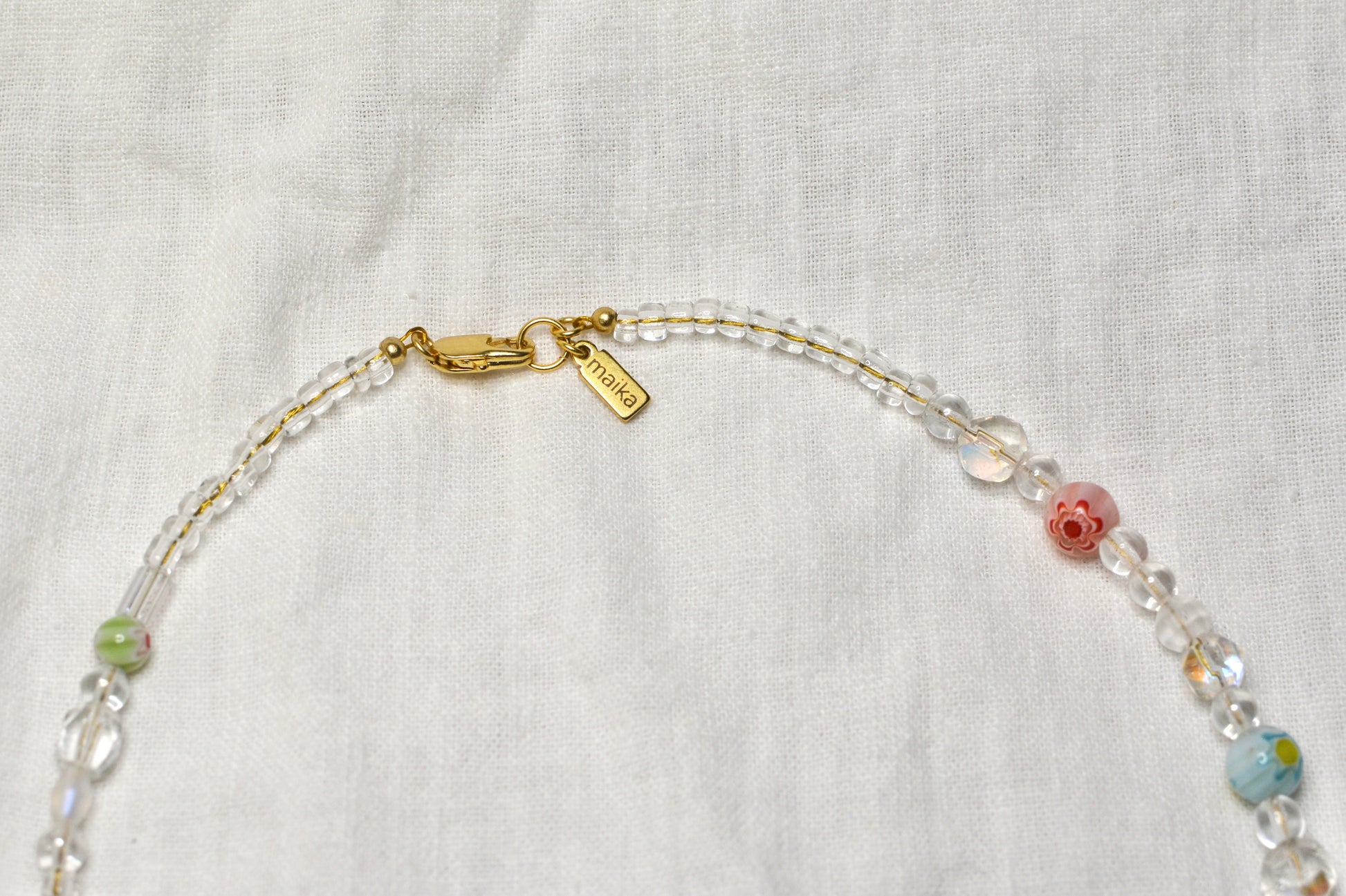 Collar hecho a mano con cuentas de vidrio murano y dije de vidrio soplado.