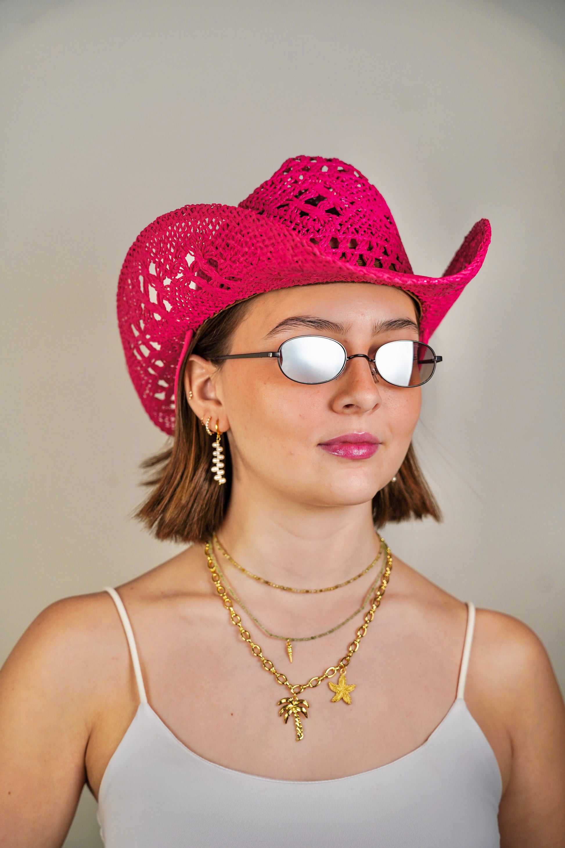 Sombrero de palma duro, tejido a mano, en color rosa barbie, ideal para destacar o agregarle color a colores neutros!! Este sombrero es un statement piece para elevar cualquier outfit.