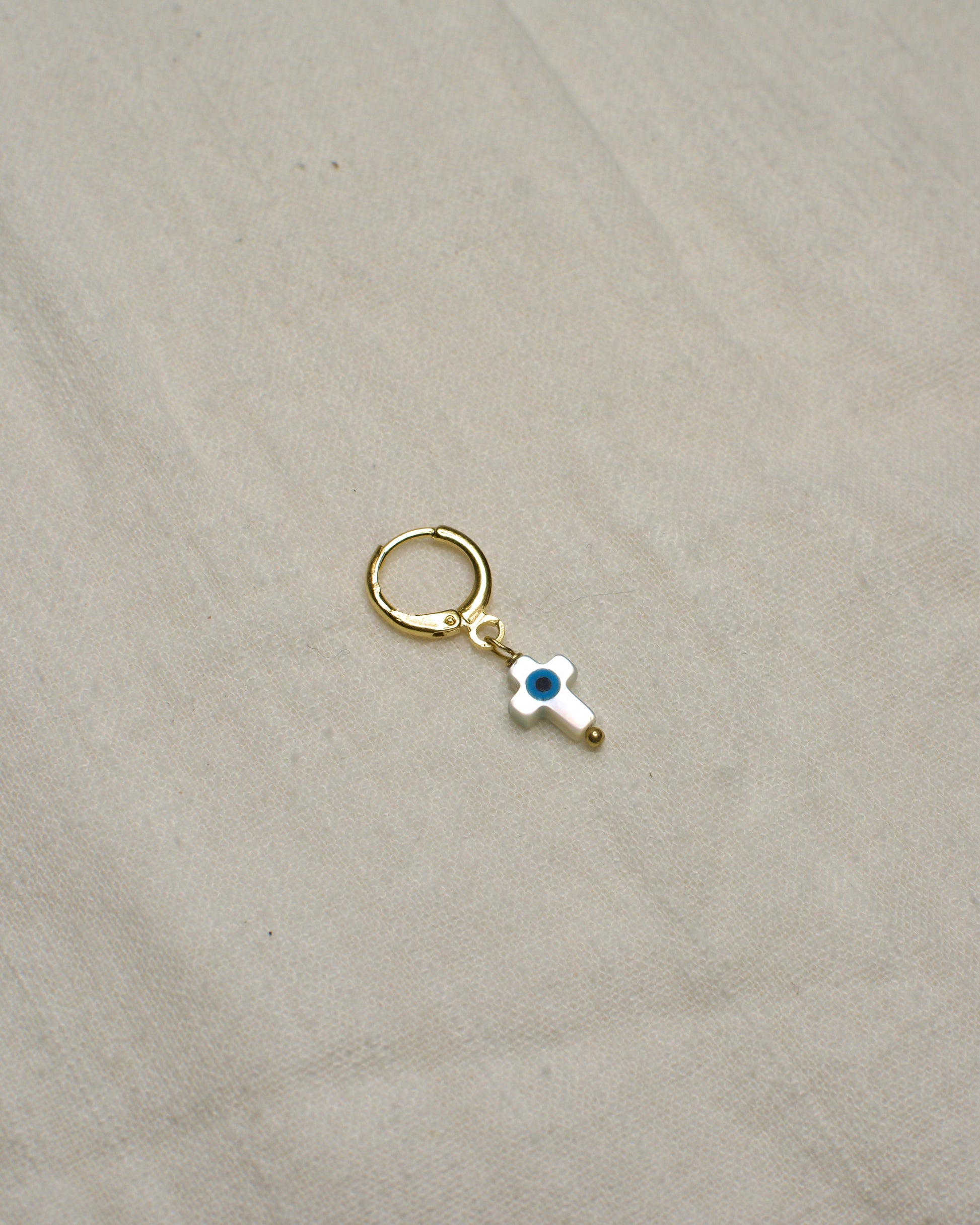 Piercing de crus de madre perla hecho a mano.