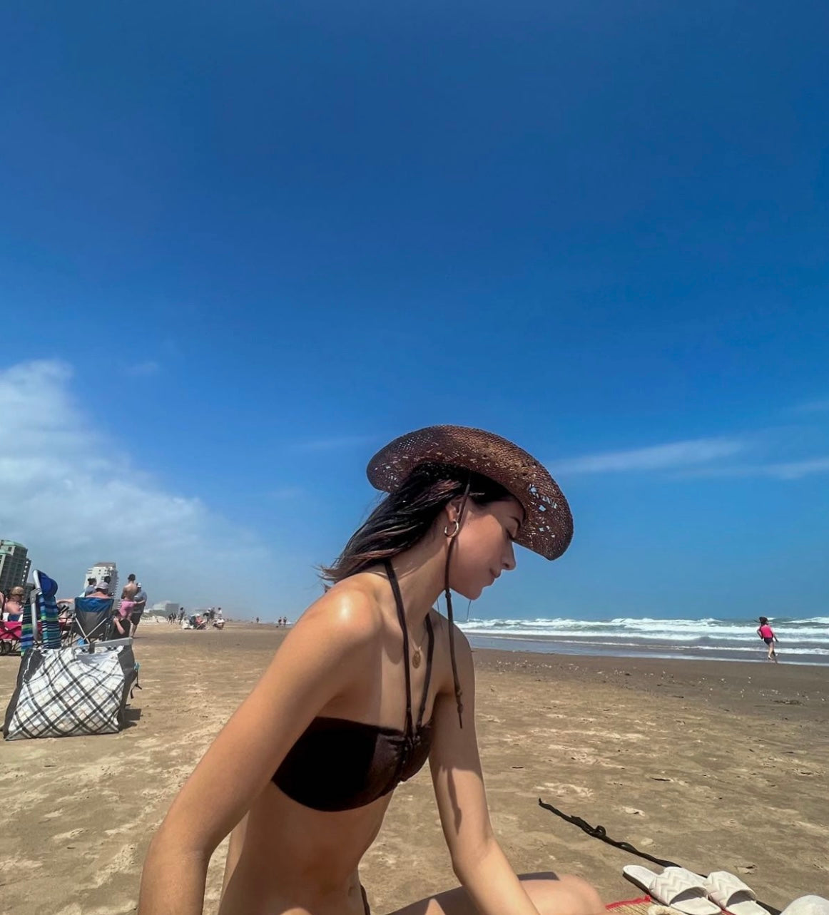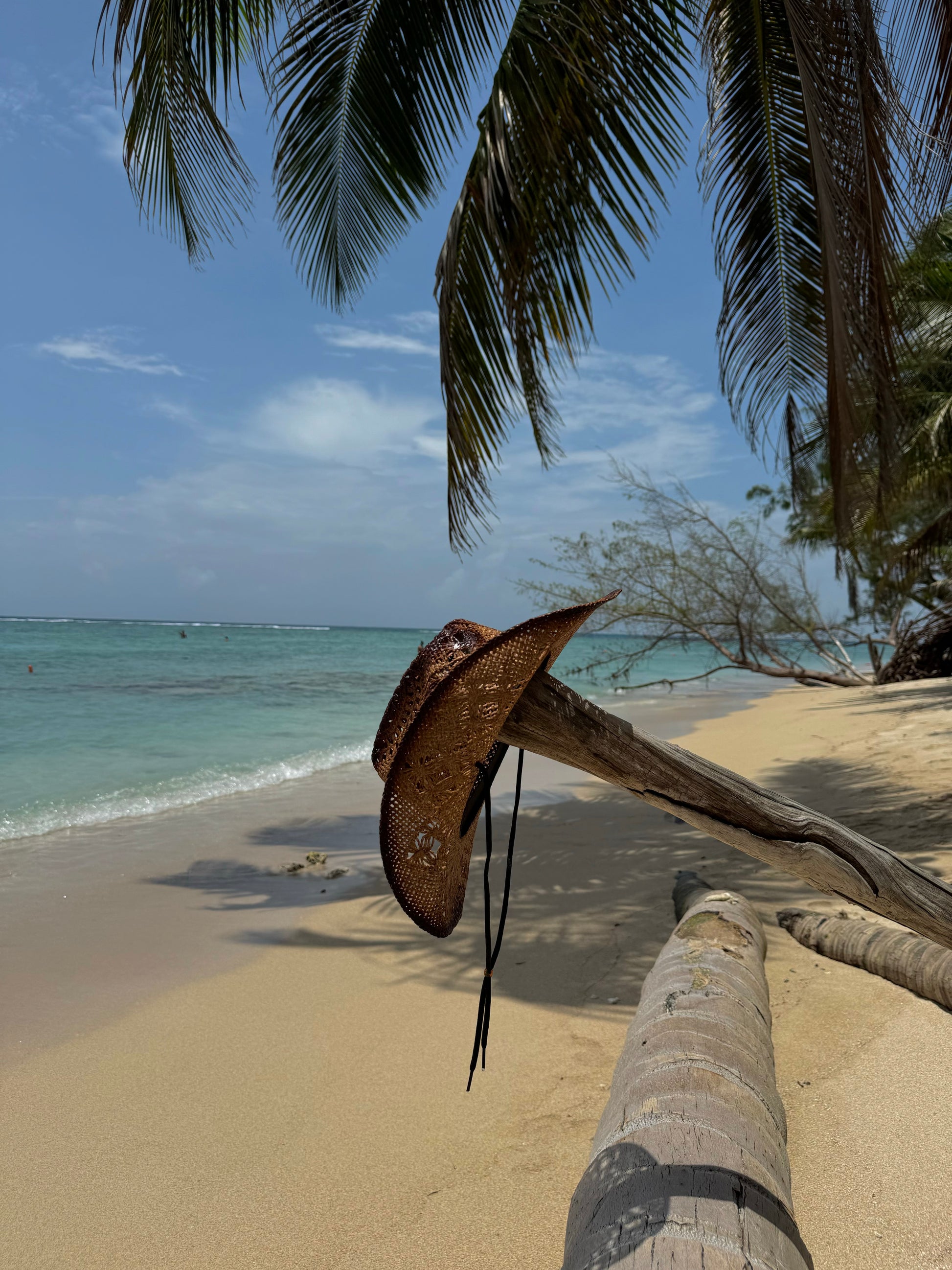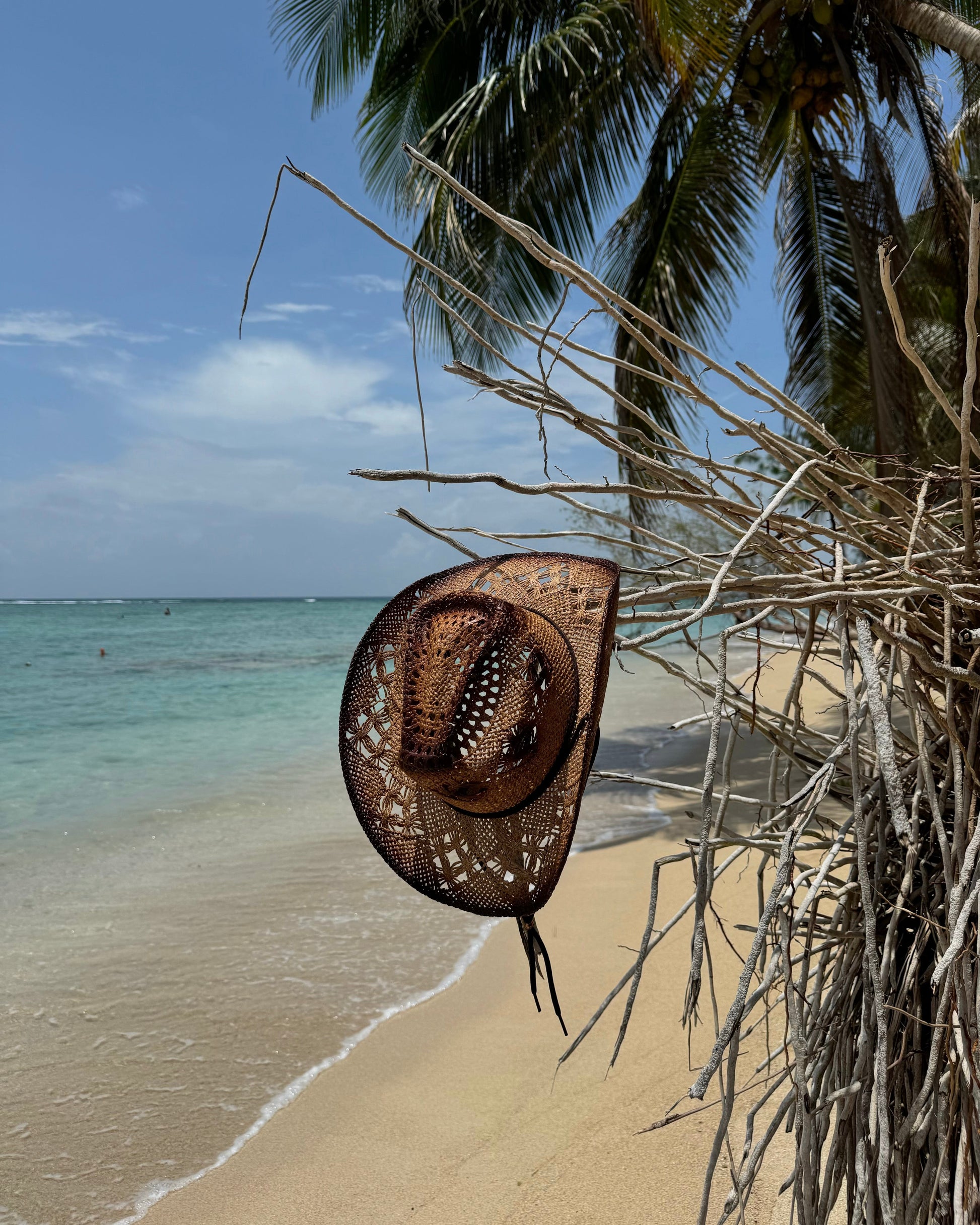 Sombrero de palma duro, tejido a mano, en color degradado de cafés obscuros, ideal para combinar con literalmento TODO!! Este sombrero es un statement piece para elevar cualquier outfit y la pieza perfecta para este verano!!
